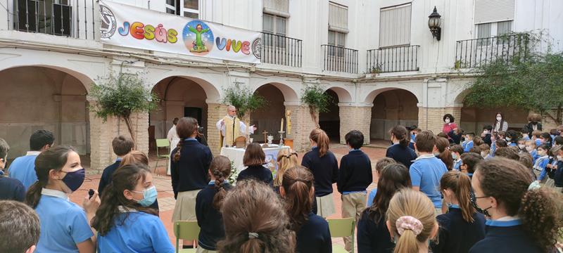 JESÚS VIVE y lo hemos celebrado con una Eucaristía de Pascua.