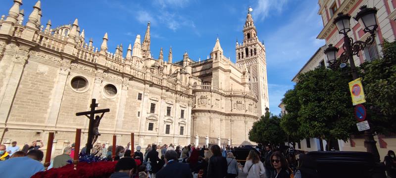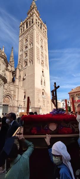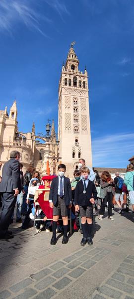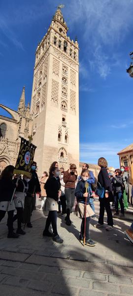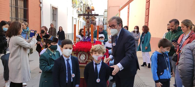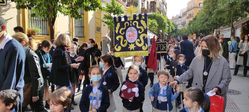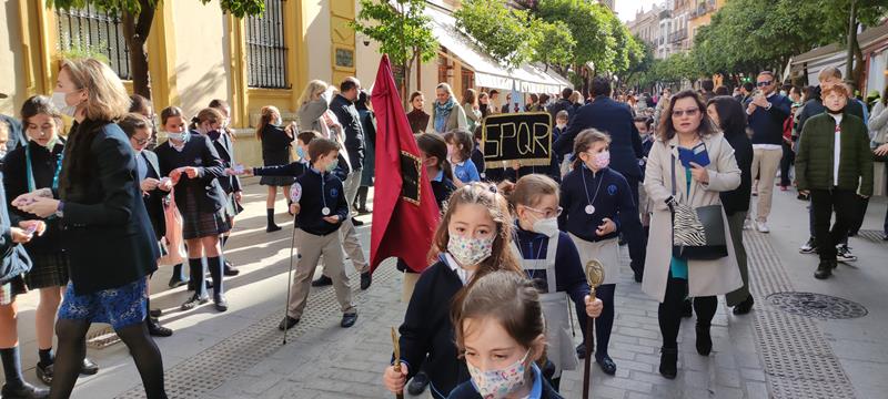 El viernes de Dolores, la cofradía del Colegio Diocesano San Isidoro procesionó por las calles del Barrio Santa Cruz.